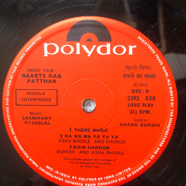 Laxmikant Pyarelal ‎– Raaste Kaa Patthar   :Polydor ‎– 2392 030 Format:Vinyl, LP, Album, First Press Country:India Released:1973 Genre:Pop, Folk,