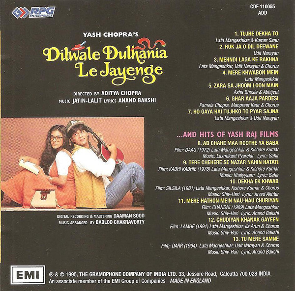 Jatin-Lalit* – Dilwale Dulhania Le Jayenge Lyrics By – Anand Bakshi (tracks: 1 to 7, 11 to 13), Javed Akhtar