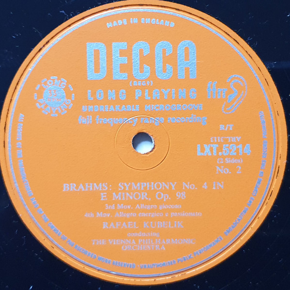 Rafael Kubelik Conducting The Vienna Philharmonic Orchestra* / Brahms* – Symphony No. 4 In E Minor Opus 98   Label: