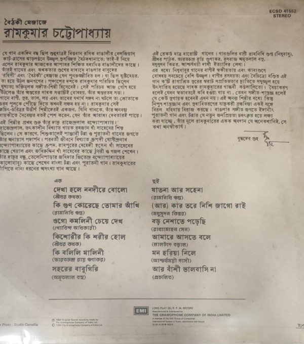 Ramkumar Chattopadhyay – Baithaki Mejaje Ramkumar Chattopadhyay Label: EMI – ECSD 41552 Format: Vinyl, LP, Album, Stereo Country: India Released: