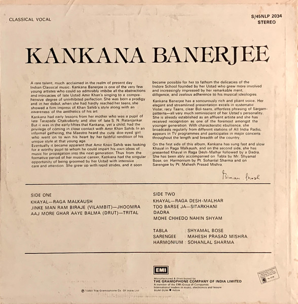 Kankana Banerjee – Classical Vocal Label: His Master’s Voice – S/45NLP 2034 Format: Vinyl, LP, 45 RPM, Album, Stereo Country:
