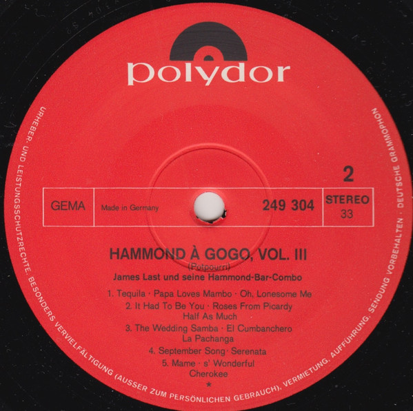 James Last Und Seine Hammond-Bar-Combo* – Hammond À GoGo 3 Label: Polydor – 249 304 Series: À GoGo Format: Vinyl, LP, Album,