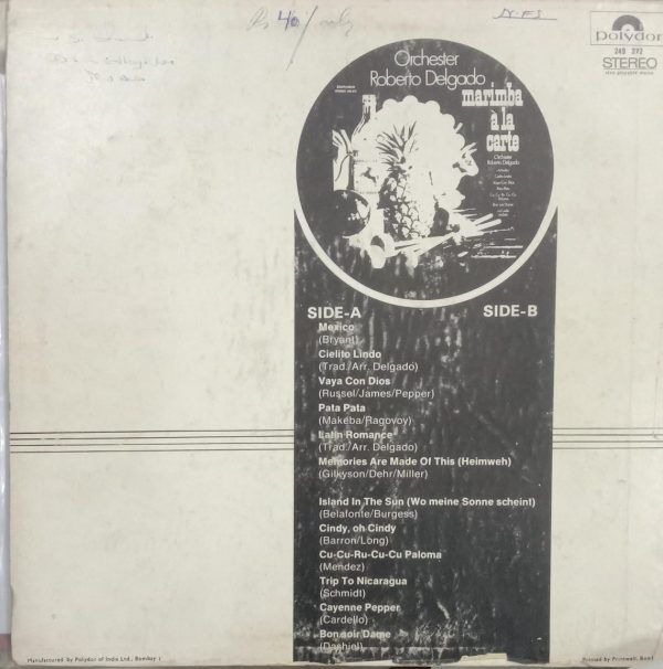 Orchester Roberto Delgado* – Marimba À La Carte Label: Polydor – 249 272 Format: Vinyl, LP, Album, Stereo Country: Germany