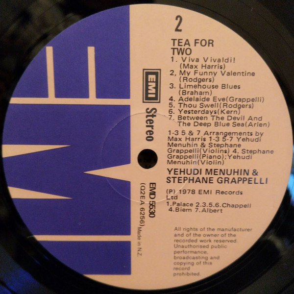 Stéphane Grappelli & Yehudi Menuhin – Tea For Two   Label: EMI – EMD 5530 Format: Vinyl, LP, Album Country: