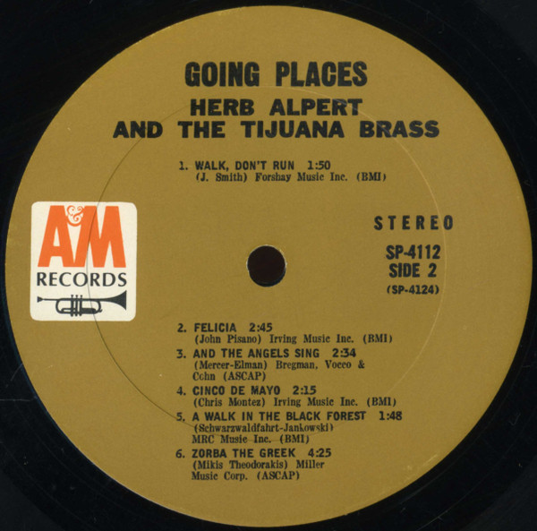 Herb Alpert And The Tijuana Brass* – !!Going Places!! Label: A&M Records – SP-4112 Format: Vinyl, LP, Album, Stereo, Monarch