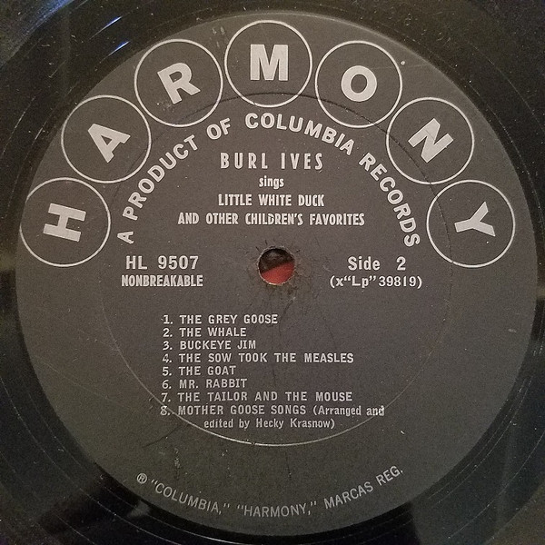 Burl Ives – Burl Ives Sings Little White Duck And Other Children’s Favorites   Label: Harmony (4) – HL 9507