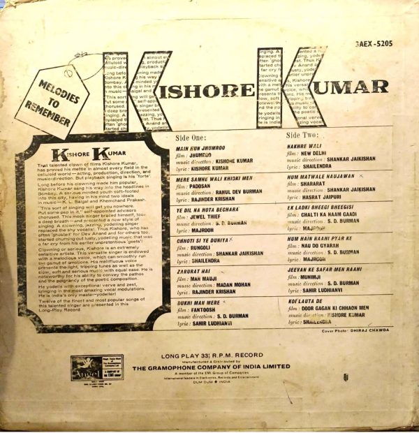 Kishore Kumar – Melodies To Remember Label: Odean Records – 3AEX.5205, Odean Records – 3AEX-5205 Format: Vinyl, LP, Compilation Country: