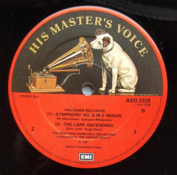 Vaughan Williams* / Boult* / New Philharmonia Orchestra – Symphony No.6 In E Minor, The Lark Ascending Label: His Master’s