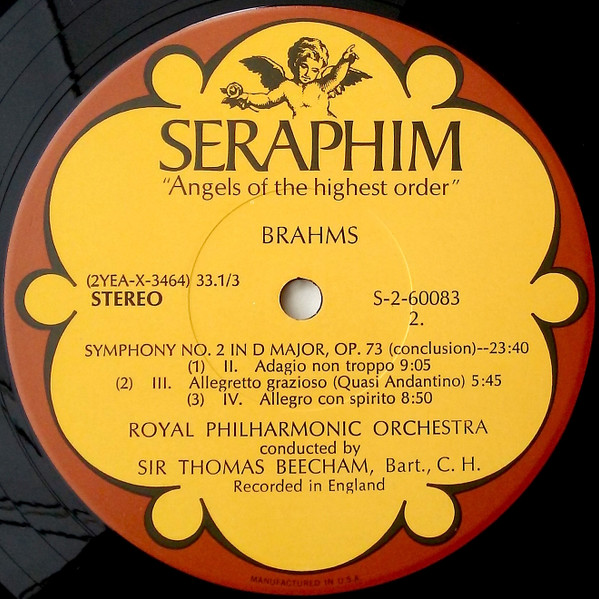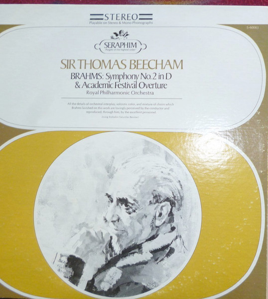 Symphony No. 2 In D / Academic Festival Overture, Johannes Brahms / Sir Thomas Beecham, Royal Philharmonic Orchestra, Vinyl Record, Lp