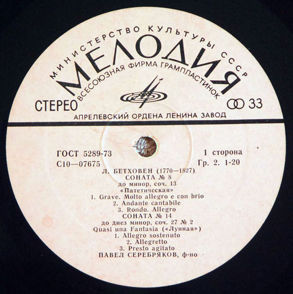 L.Beethoven* – Pavel Serebriakov* – Sonatas Nos. 8, 14, 23 Pathetique – Moonlight – Appassionata Label: Мелодия – 33 С