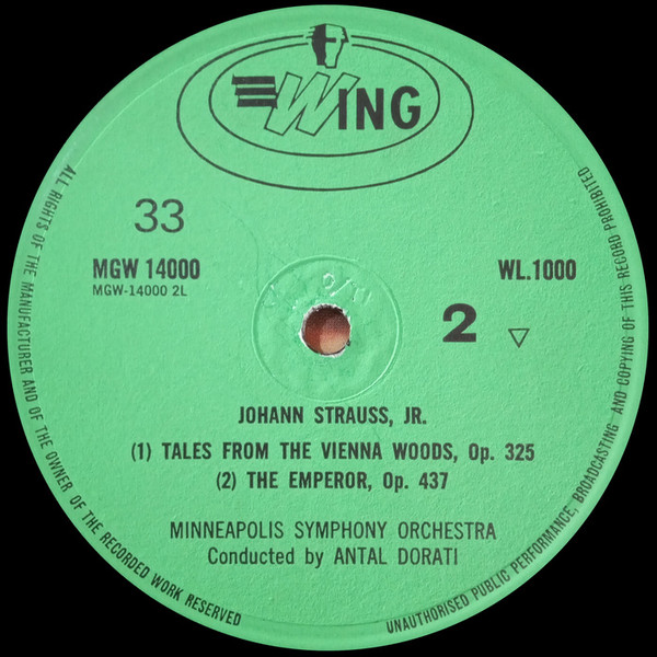 Johann Strauss, Jr., Minneapolis Symphony Orchestra, Antal Dorati – Waltzes Of Strauss Label: Wing Records – WL1000 Format: Vinyl, LP,