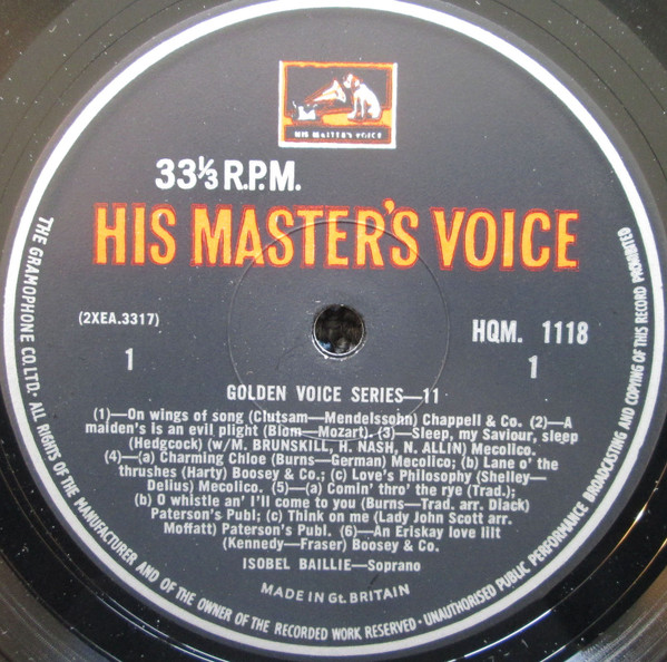 Isobel Baillie – Isobel Baillie Vol. 2 Label: His Master’s Voice – HQM 1118 Series: Golden Voice Series (2) –