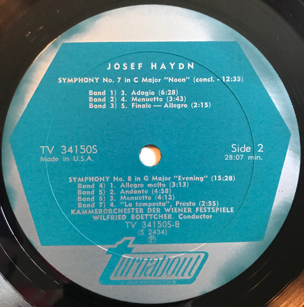 Haydn, Kammerorchester Der Wiener Festspiele, Wilfried Boettcher – Symphonies No. 6 “Le Matin” No. 7 “Le Midi” No. 8 “Le