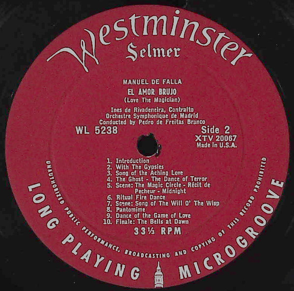 Manuel De Falla – El Retablo De Maese Pedro / El Amor Brujo   Label: Westminster – WL 5238 Format: