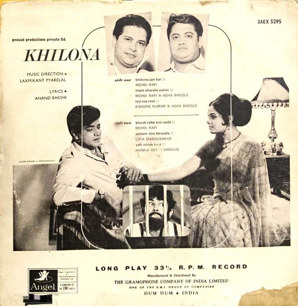 Laxmikant Pyarelal* – Khilona Label: Angel – 3AEX 5295 Format: Vinyl, LP Country: India Released: 1970 Genre: Pop, Folk, World,
