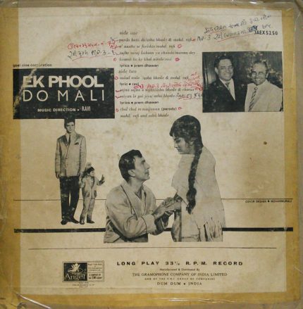 Ravi – Ek Phool Do Mali Lyrics By – Prem Dhawan (tracks: A1-A4, B2-B3), Ravi (tracks: B1) Label: Odeon –