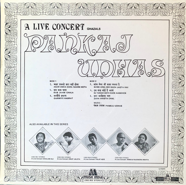 A Live Concert, Pankaj Udhas, Vinyl Record, Lp