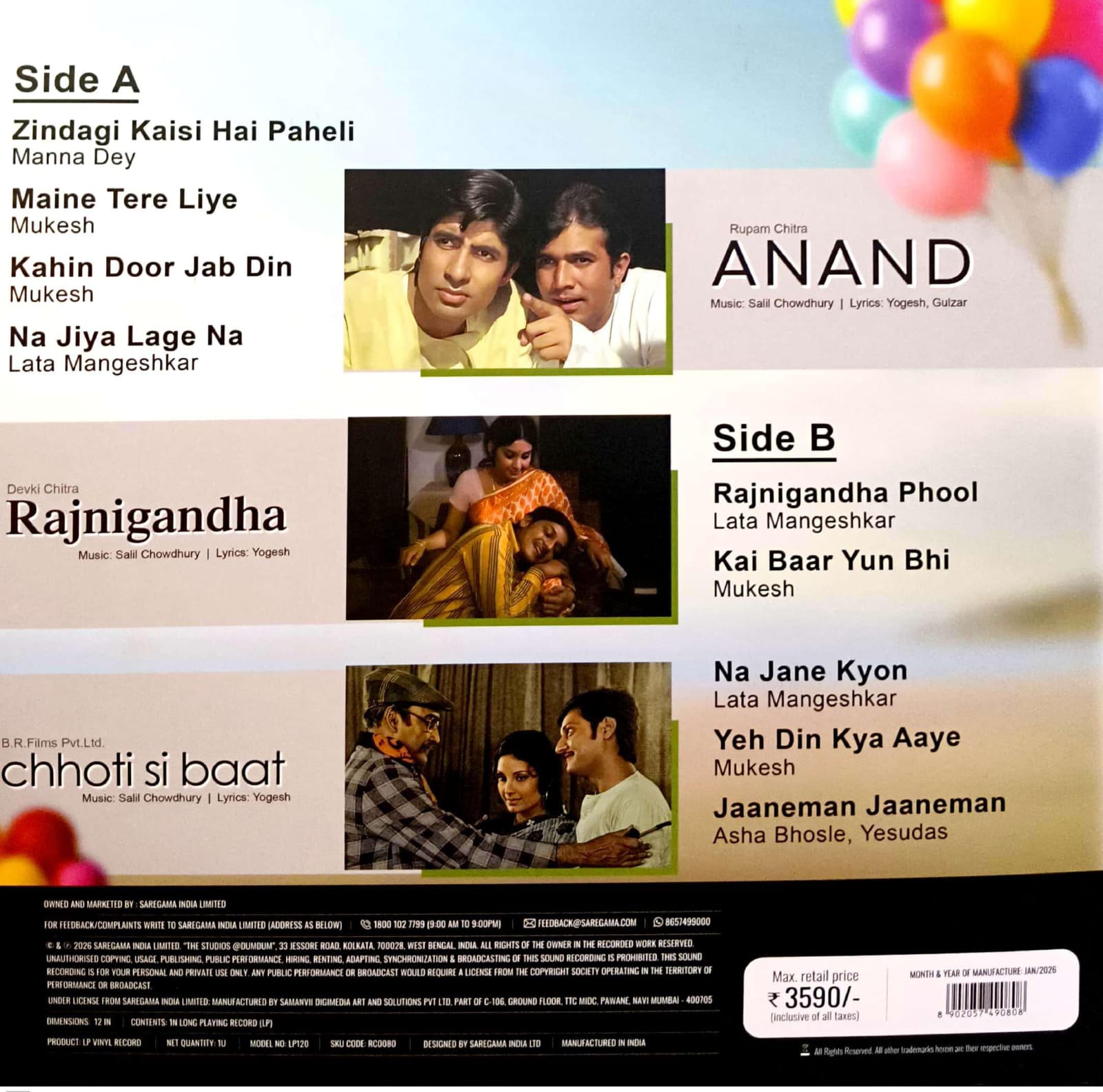 Home Bollywood Vinyl Anand/Rajanigandha/Chhoti Si Baat , Salil Chowdhury, Gulzar & Yogesh, Vinyl Record, Lp