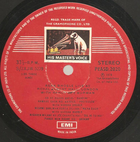 Home 33 RPM Asha Bhosle, R. D. Burman – Live At Royal Albert Hall, London – Lp Record