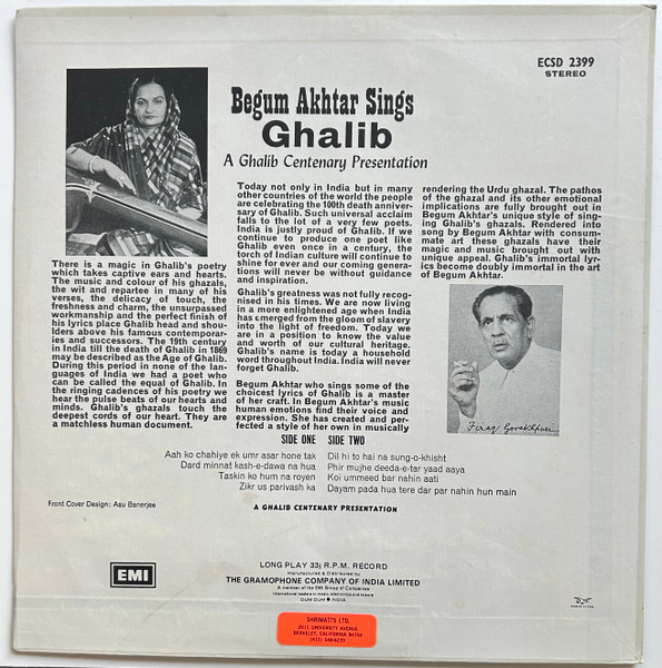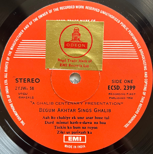 Begum Akhtar Sings Ghalib;vinyl_record gramophone house