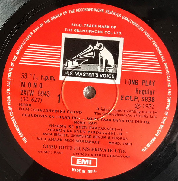 Chaudhvin Ka Chand, Ravi, Shakeel Badayuni, Vinyl Record, Lp