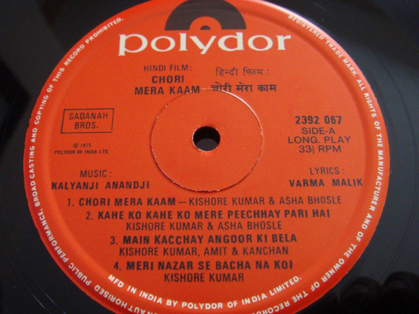 Chori Mera Kaam, Kalyanji Anandji, Varma Malik, Vinyl Record, Lp