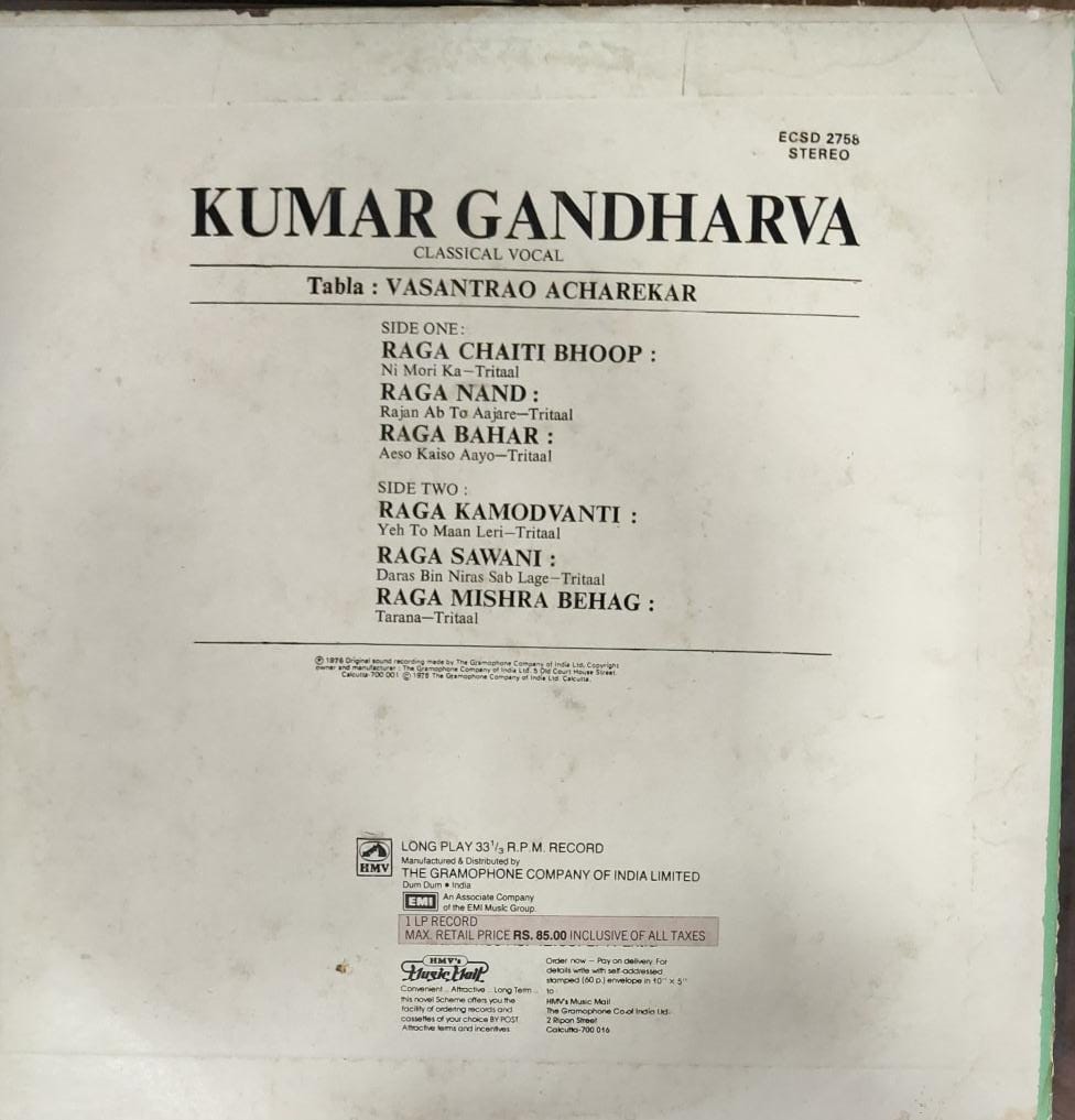 Vocals – Pandit Kumar Gandharva