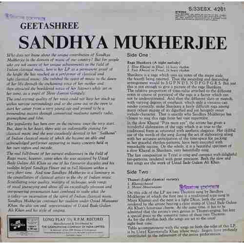 Classical Vocal, Sandhya Mukherjee, Vinyl Record, Lp