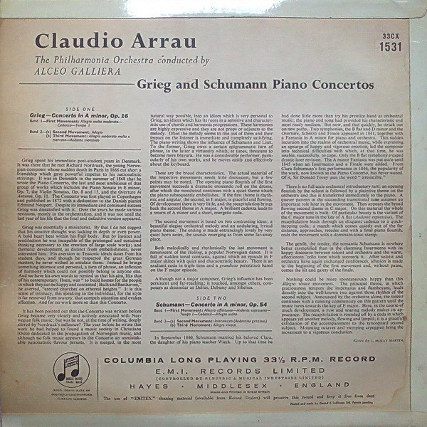 Claudio Arrau, Alceo Galliera, Philharmonia Orchestra – Grieg*, Schumann* – Piano Concertos