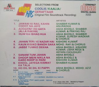 Coolie, Kaalia, Geraftaar, R. D. Burman, Laxmikant Pyarelal, Bappi Lahiri, Audio CD