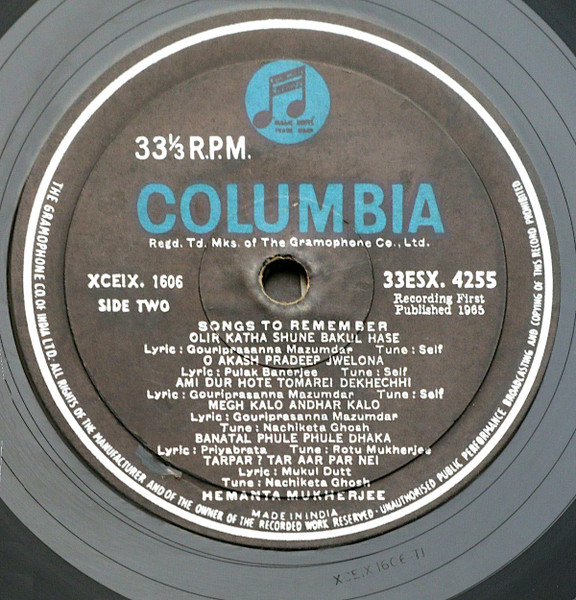 Geetashree Sandhya Mukherjee* / Hemanta Mukherjee – Songs To Remember Label: Columbia – 33ESX. 4255 Format: Vinyl, LP, Compilation Country: