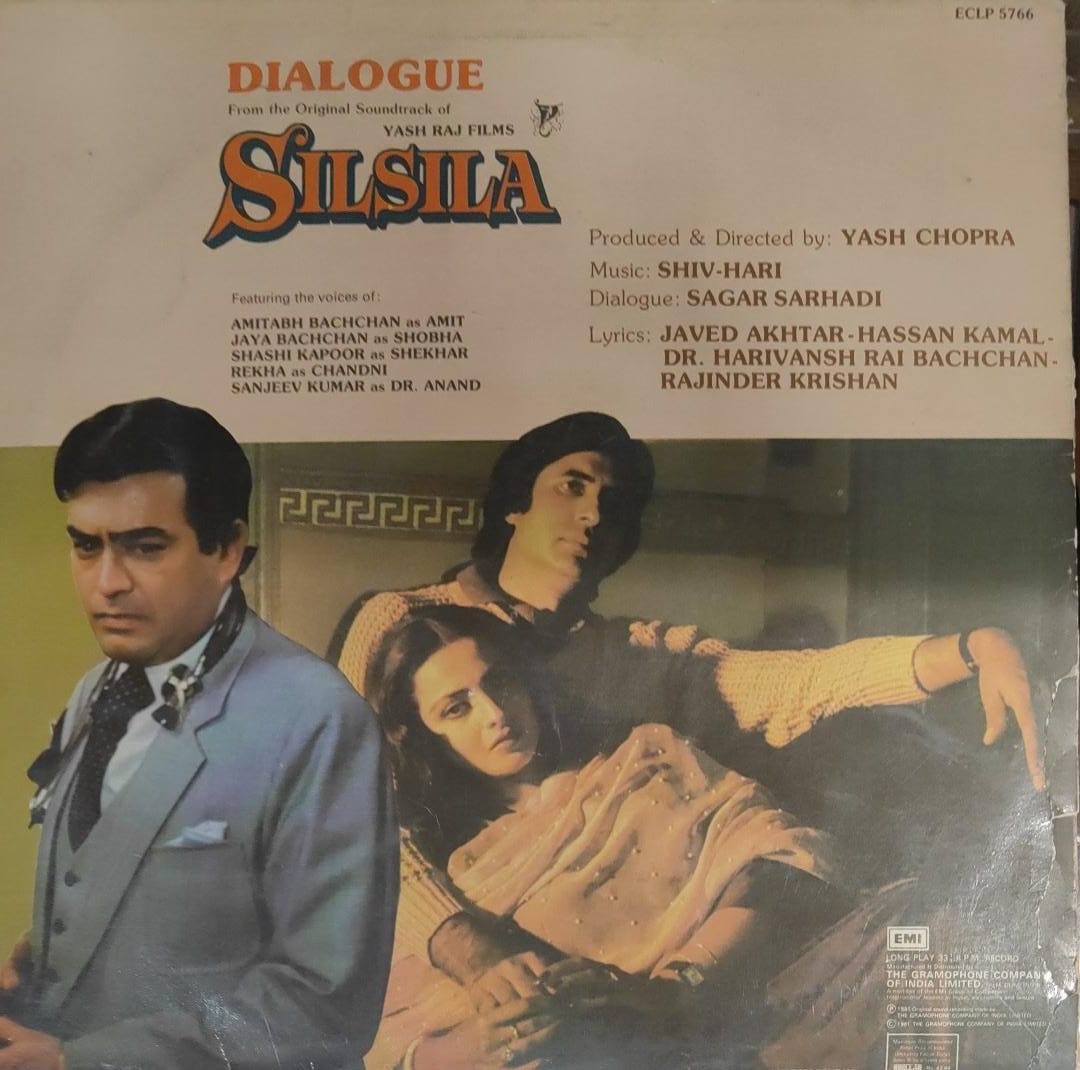 Dialogue From Yash Chopra’s Silsila, Shiv Hari, Sagar Sarhadi, Vinyl Record, Lp