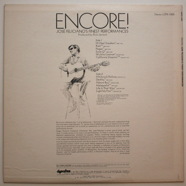 Encore! José Feliciano’s Finest Performances, Vinyl Record, Lp