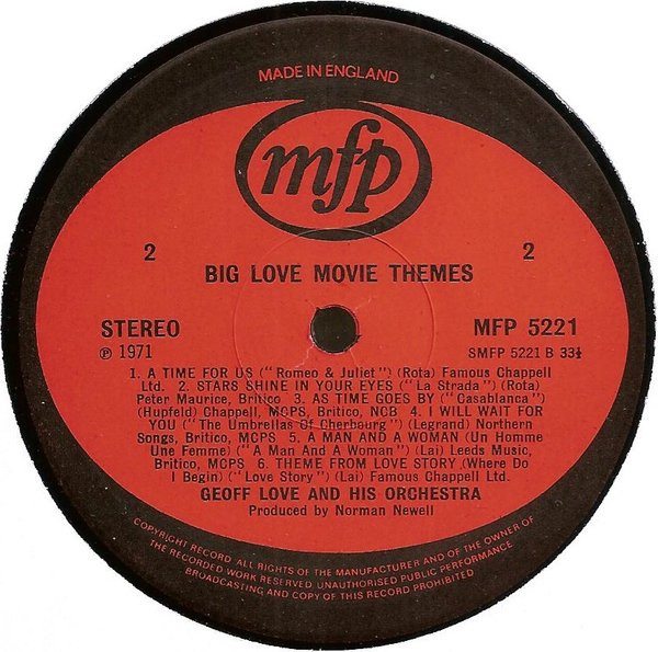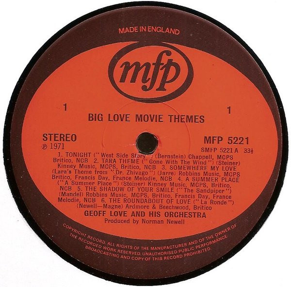 Geoff Love And His Orchestra – Big Love Movie Themes – Lp Record