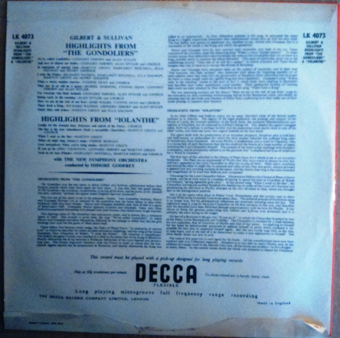 Gilbert & Sullivan, D’Oyly Carte Opera Company With Chorus And The New Symphony Orchestra* Conducted By Isidore Godfrey – Highlights From “The Gondoliers” & “Iolanthe”