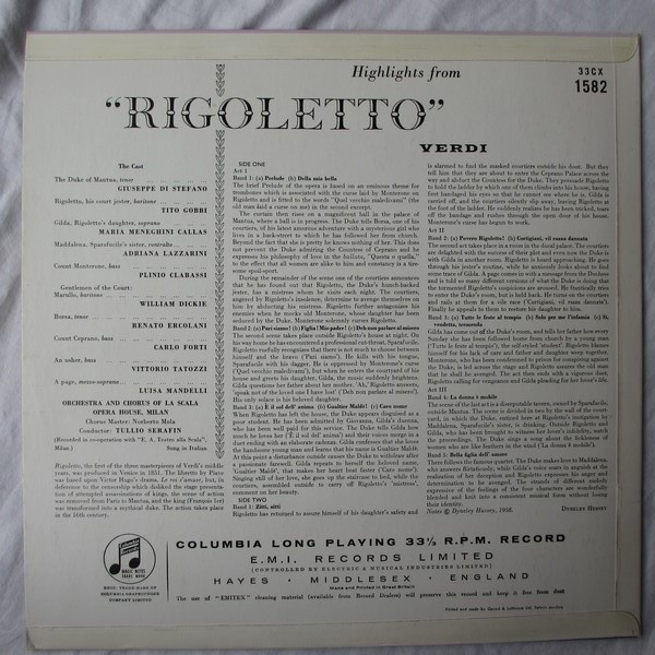 Giuseppe Verdi, Giuseppe di Stefano, Tito Gobbi, Maria Meneghini Callas*, Adriana Lazzarini, Plinio Clabassi, William Dickie, Renato Ercolani, Carlo Forti, Tullio Serafin, Norberto Mola – Rigoletto Highlights From The Complete Recording