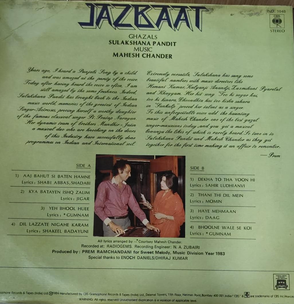 Jazbaat, Sulakshana Pandit, Mahesh Chander, Vinyl Record, Lp