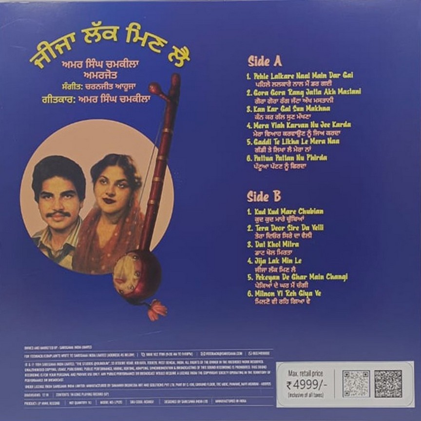 Jija Lak Minle, Amar Singh Chamkila, Vinyl Record, Lp