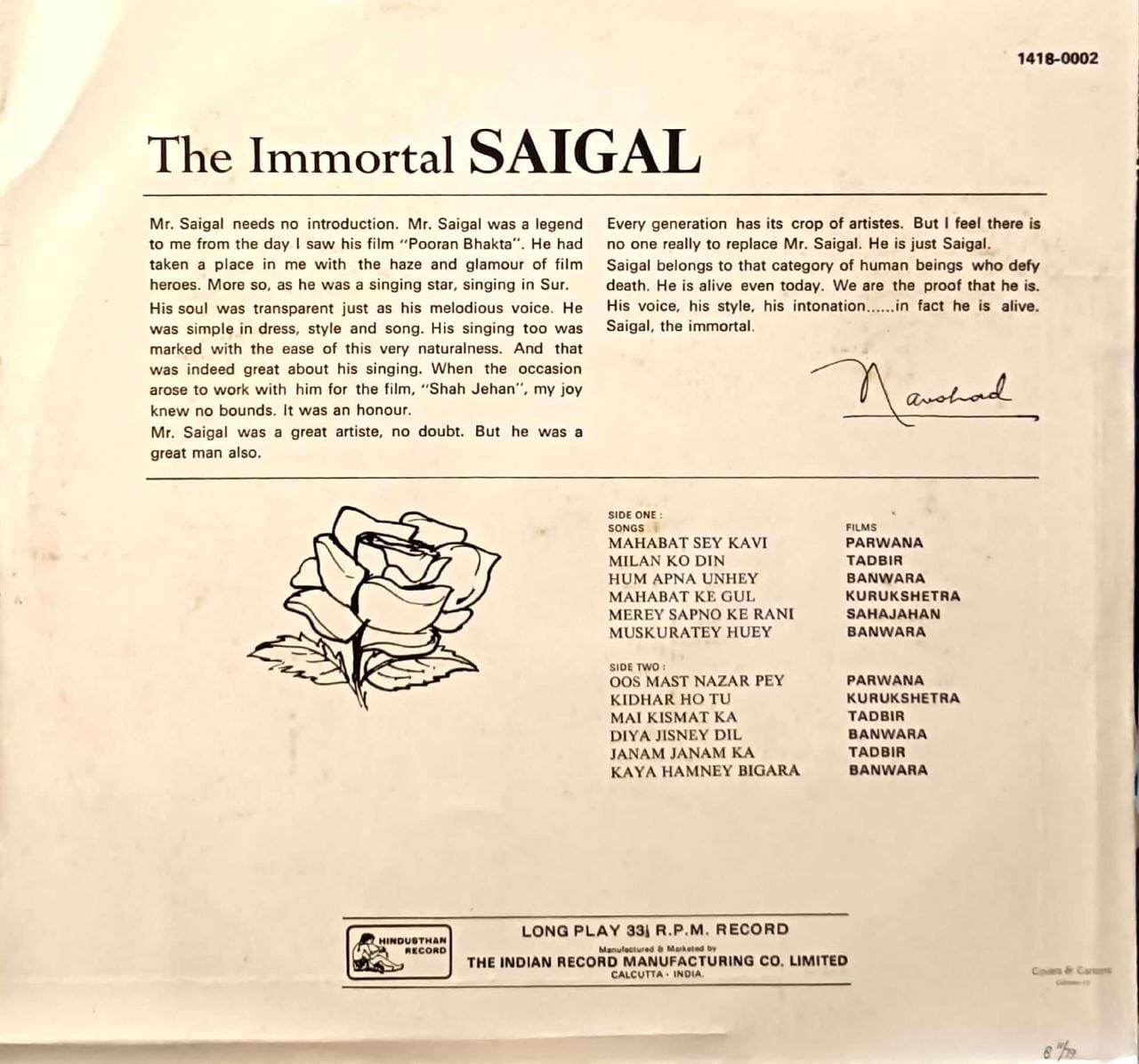 Label: Hindusthan Record – 1418-0002