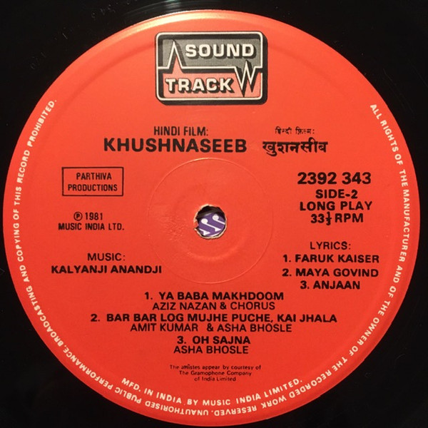Home Bollywood Vinyl Kalyanji-Anandji ‎– Khush Naseeb