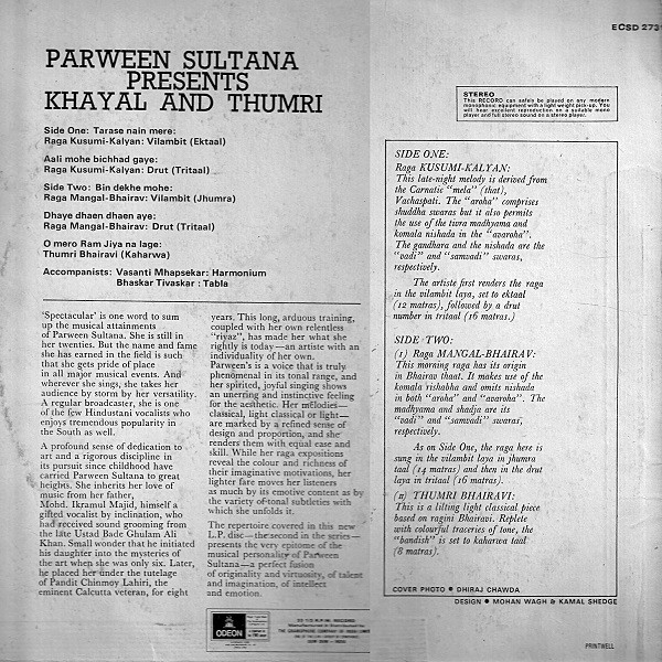 Khayal & Thumri, Parween Sultana, Vinyl Record, Lp