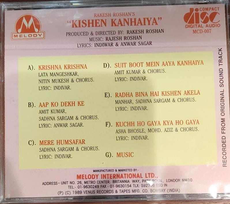 Lyrics By – Anwar Sagar (tracks: B), Indivar (tracks: A, C to F)