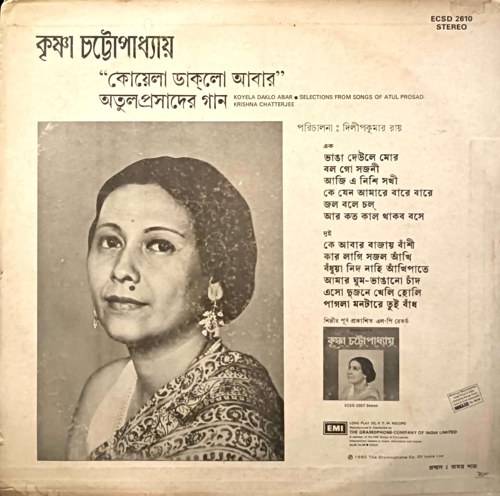 কৃষ্ণা চট্টোপাধ্যায়* – “কোয়েলা ডাকলো আবার” : অতুলপ্রসাদের গান = Koyela Daklo Abar : Selections From Songs Of Atul Prosad