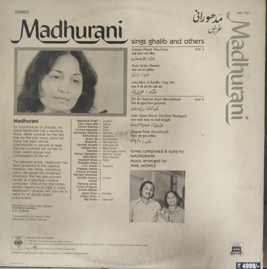 Madhurani Sings Ghalib And Others, Vinyl Record, Lp