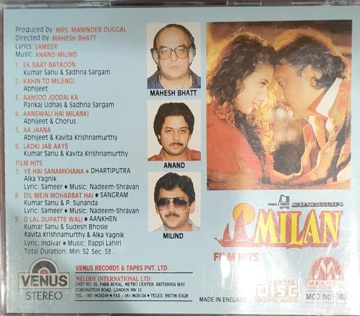 Music By – Anand-Milind* (tracks: 1 to 6), Bappi Lahiri (tracks: 9), Nadeem-Shravan* (tracks: 7, 8)