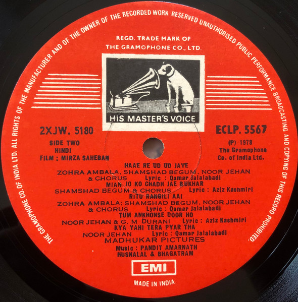 Mirza Saheban, Pandit Amarnath & Husnalal-Bhagatram, Noor Jehan, Vinyl Record, Lp