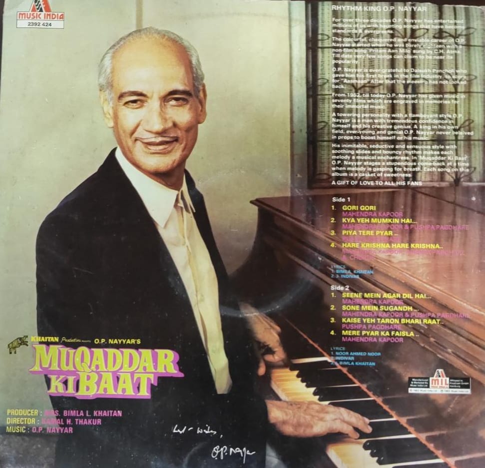 Muqaddar Ki Baat, O.P. Nayyar, Vinyl Record, Lp