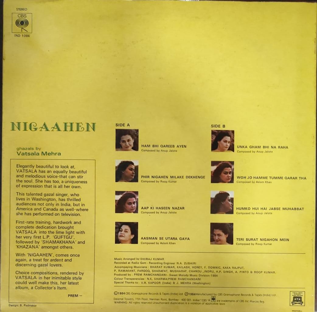 Copyright © – CBS Gramophone Records & Tapes (India) Ltd.