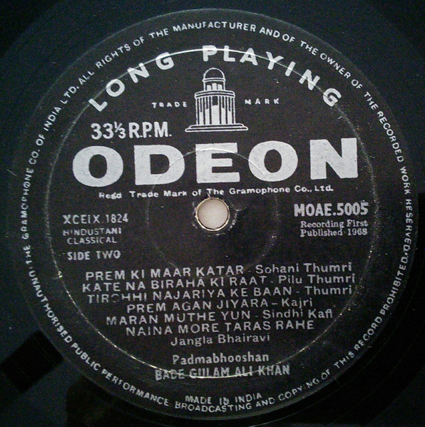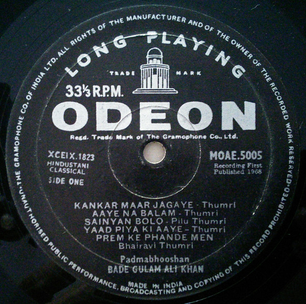 Padma Bhooshan Ustad Bade Ghulam Ali Khan;vinyl_Record gramophone house