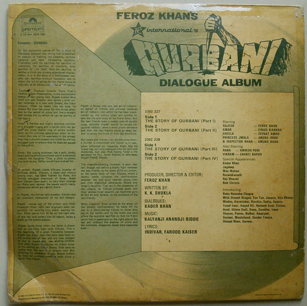 Kalyanji Anandji* / Biddu – Qurbani (Dialogue Album)